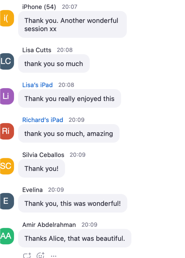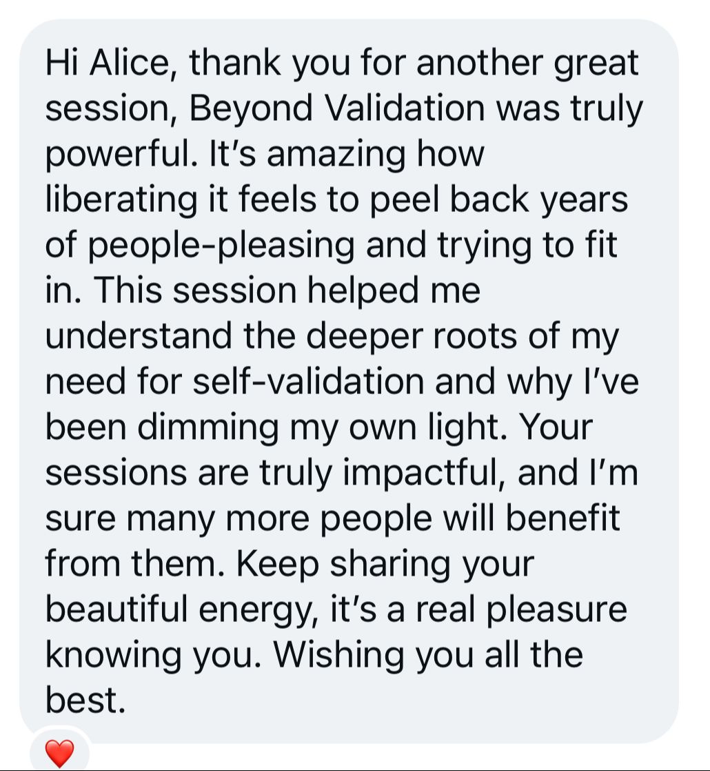 There's something different about doing this work live. The energy of a live online session. The shared experience of people choosing to look inward at the same time and realise that they are not the only one feeling that way. The fact that, for those few hours, you're not alone with whatever you're carrying. The chance to ask me your questions live.